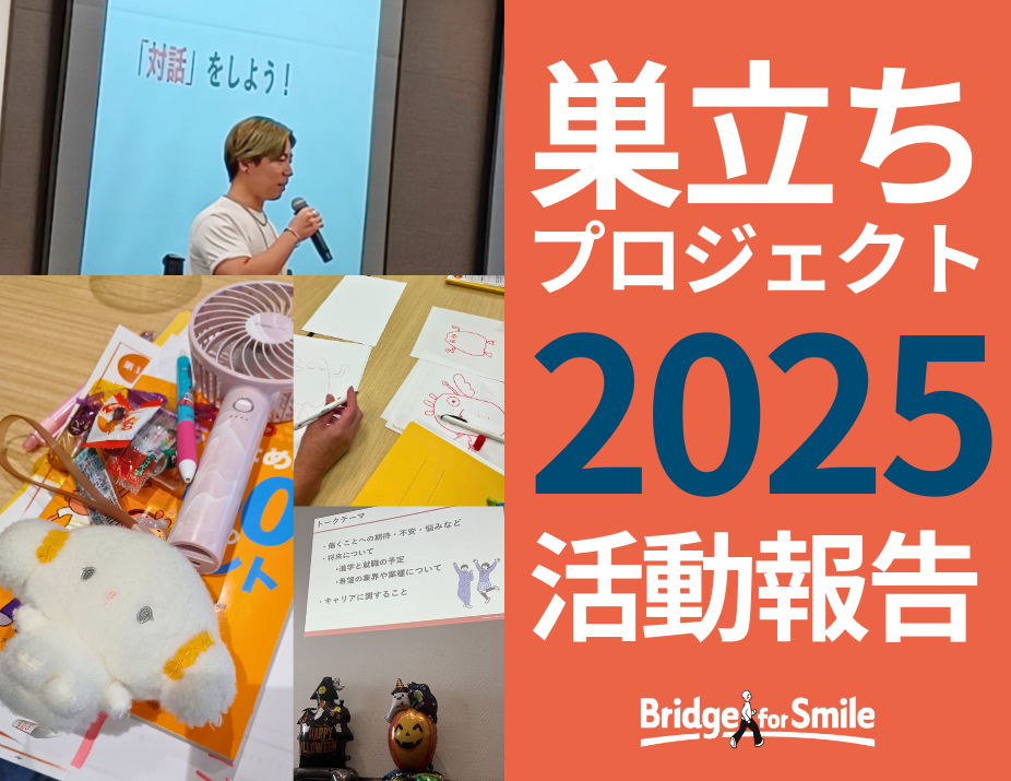 児童養護施設などで暮らす子どもたちは、原則18歳になると施設を巣立ち、自分の力で生活を始めます。ブリッジフォースマイル(B4S)では、そんな巣立ちを目前に控えた高校3年生を対象に、自立に向けた準備を支...
