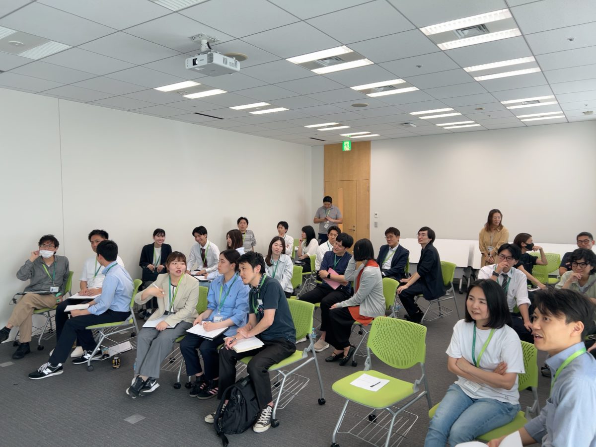 社内で「よいこと事業」というプロジェクトを立ち上げられ、社員を巻き込みながら社会貢献活動をされています。社内の会議室に約30名の方が集まり、2時間のプログラムがスタートしました。