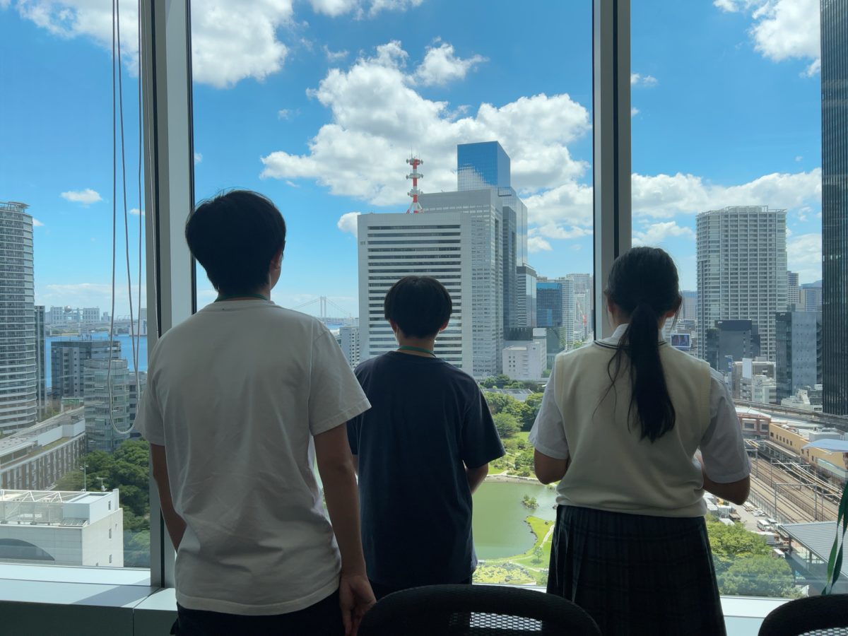 同社の本社会議室からは、浜離宮や東京タワーが間近に見える圧巻の景色で、子どもたちは大興奮。開始までの時間、素敵な景色を見ながら社員のみなさまとの談笑がはずみます。