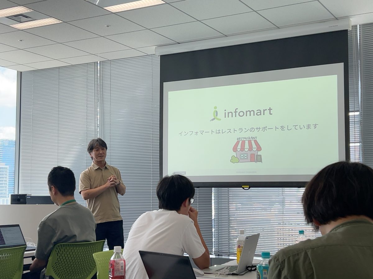 その後、会社紹介のお時間。飲食店でかつて主流であったFaxを中心とした商習慣を改善した事例などから、プログラムがいかに社会を便利にしているか理解を深めます。