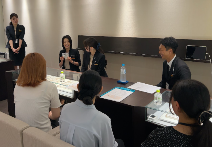 「働いて楽しい時はどんな時ですか?」「お店のジュエリーを自分でも買ったことがありますか?」「どのような勉強をしたら、この会社に入れますか?」といった質問に、社員のみなさまが丁寧に回答してくださいます。愛をもって仕事をされているのが伝わってくる時間でした。