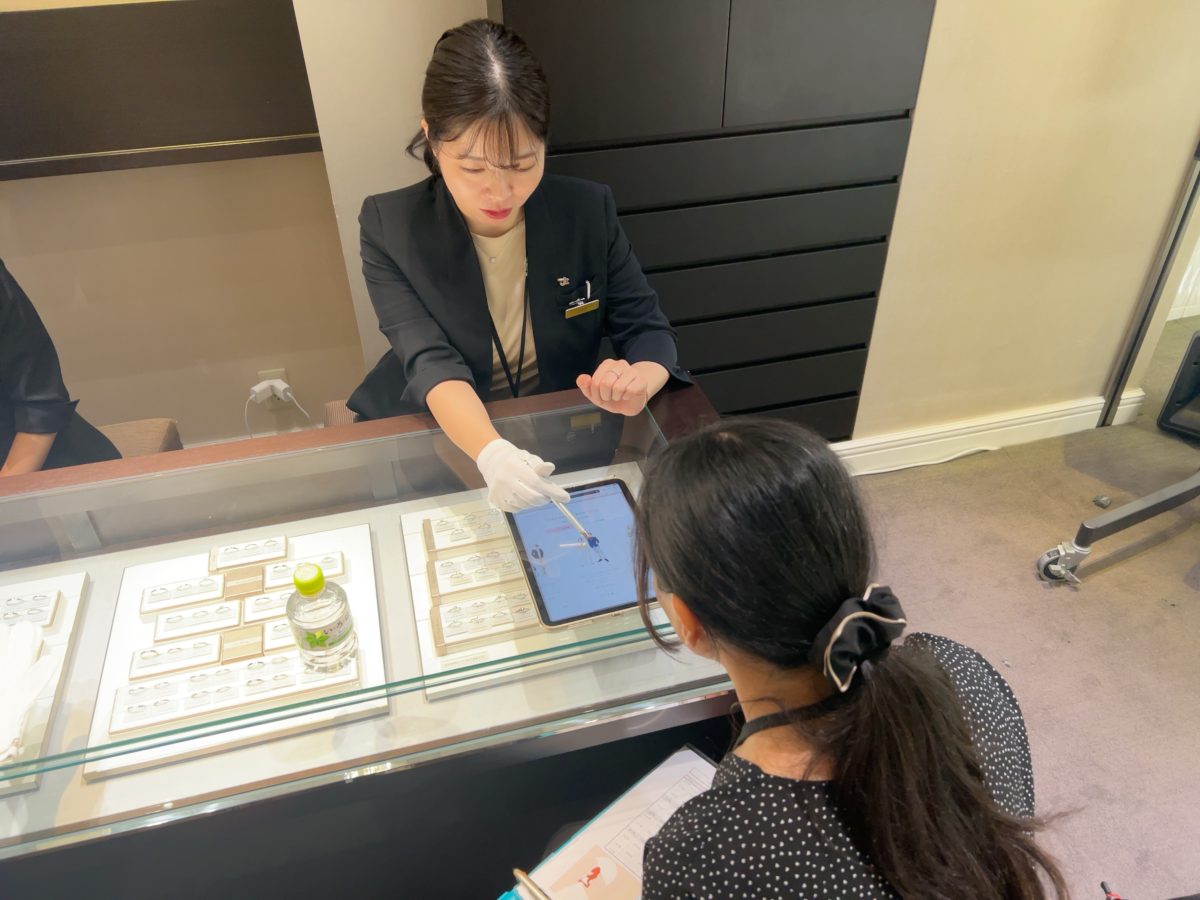 気になるリングを自由に試してみたり、逆に社員さんの好みに合わせて子どもから提案をしたり、華やかで楽しい時間を過ごしました。