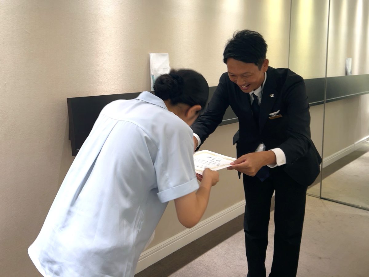 その後は、子どもたちが特に楽しみにしていた接客の時間です。社員様から、実際に行われている接客を受けます。