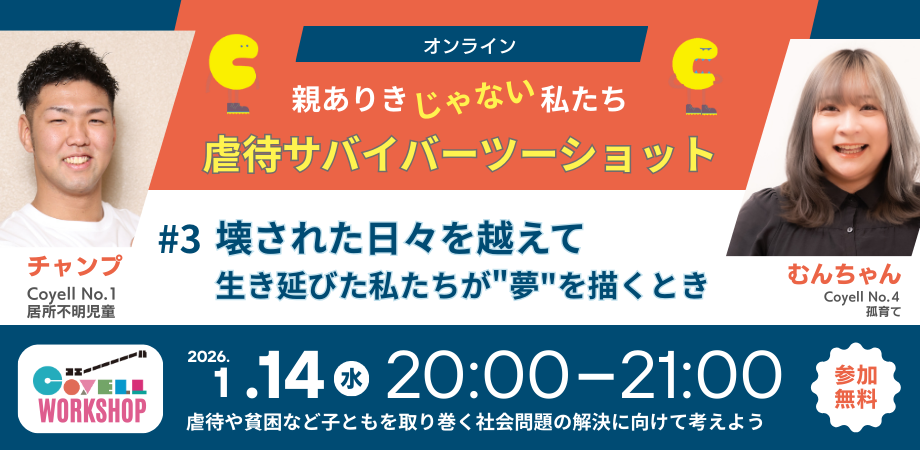 そして、私たちは当事者の立場から、社会にもっと必要とされる支援のあり方、そして今まさに困難な状況にいる子どもたちへの、希望のメッセージをお届けします。この対話を通して、虐待や親子関係の課題を「他人事」で終わらせず、誰もが自分の人生を前向きに切り開ける社会を創るためのヒントを、参加者の皆さんと一緒に見つけていきたいと願っています。