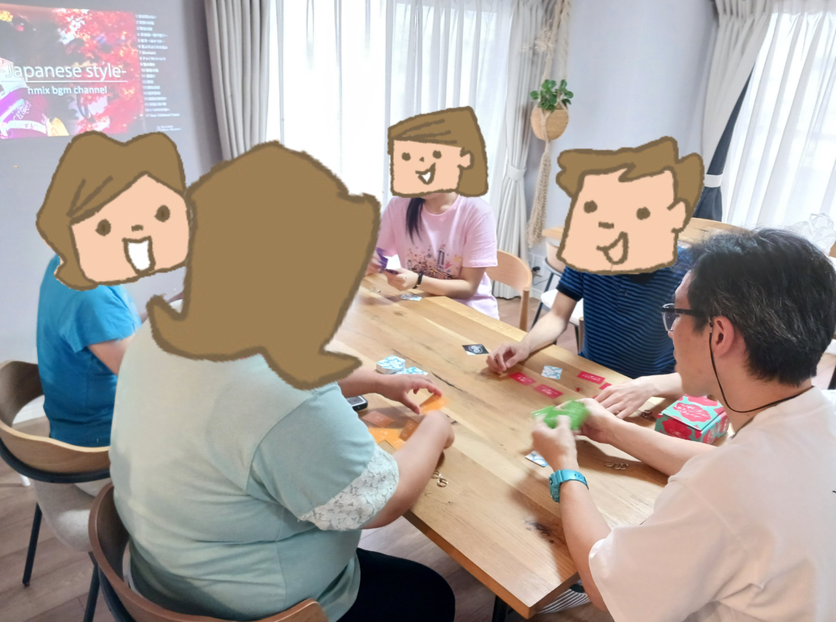 「B4S PORT しもきた」で若者たちとカードゲームを楽しむオタケン