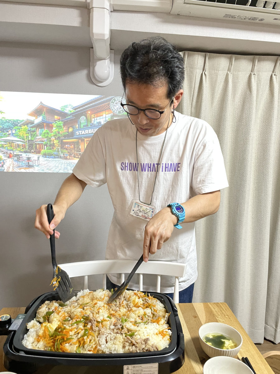 「B4S PORT しもきた」で若者たちに提供する食事をつくるオタケン