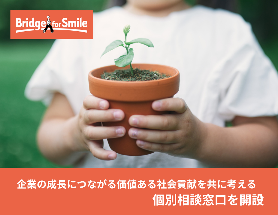 認定NPO法人ブリッジフォースマイル(B4S)では、「これから新たな一歩を踏み出したい」「今の活動をアップデートしたい」とお考えの企業さまのために、「企業向け個別相談窓口」を新設いたしました。